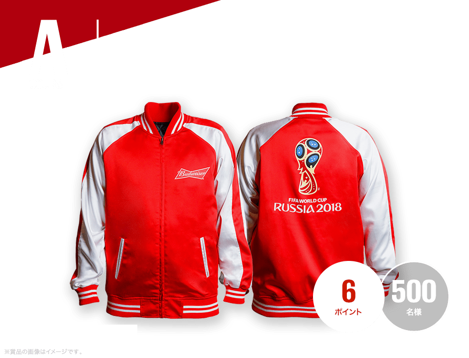 バドワイザー ワールドカップ・ジャンパーなどを抽選で1,250名様にプレゼントいたします。